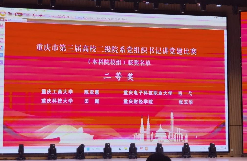 图1 我校获重庆市第三届高校二级院系党组织书记讲党建比赛二等奖