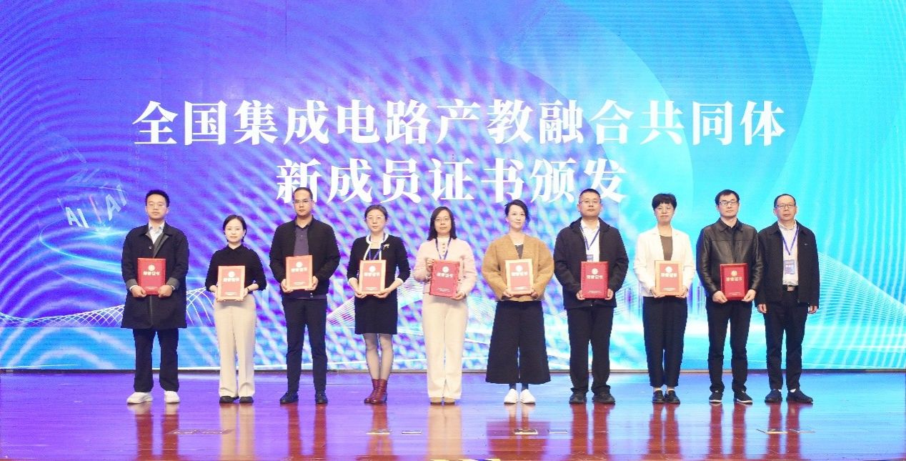 图2 陈良教授为全国集成电路产教融合共同体新加盟成员单位颁发证书