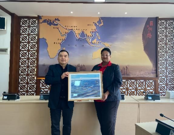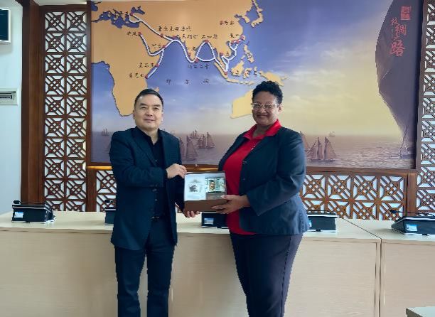 开班仪式上,聂强校长与Marlyn Rawlins女士互赠礼物。Marlyn Rawlins女士赠送给我校一幅以巴巴多斯特色飞鱼为主题的画作,展现当地独特文化;聂强校长回赠极具中国韵味的茶叶,寓意中巴职教交流如茶香般绵长深远。仪式期间,幸昆仑副校长还为巴巴多斯TVET Council的教育工作者们佩戴校牌并合影留念。