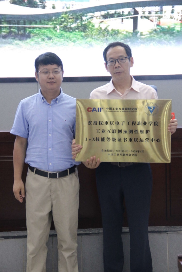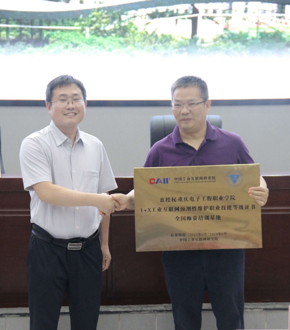会上分别进行了工业互联网预测性维护全国师资培训中心和工业互联网预测性维护重庆运营中心授牌仪式。工业互联网预测性维护全国师资培训中心由中国工业互联网研究院标准化所培训技术负责人张玉良授牌,我校冉学农副校长接牌。