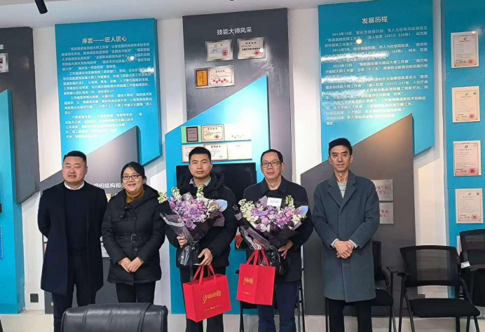 2026年1月30日上午,重庆市沙坪坝区人力资源和社会保障局一行来到我校,专程慰问国家级技能大师工作室负责人陈良教授及世界技能大赛冠军李小松,为他们送去慰问信、慰问金及新春祝福。我校副校长叶勇、人力资源处处长周鑫以及部分二级学院代表共同参加了此次活动。